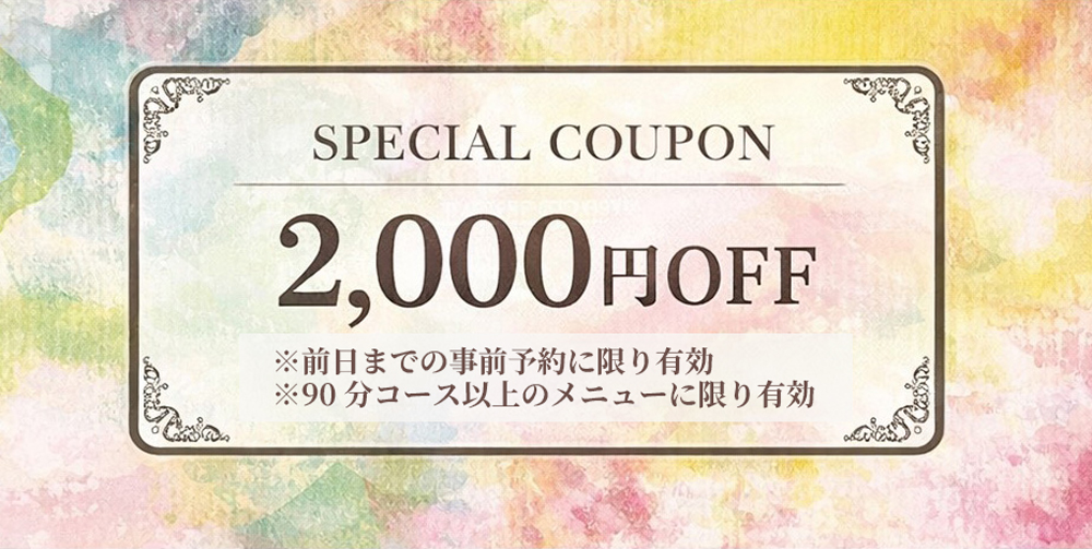 セラピストにより対応できないオプションがございます。あらかじめご了承ください。